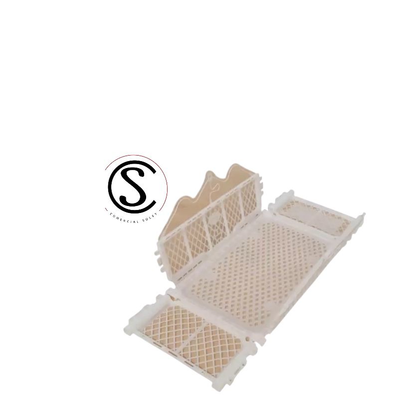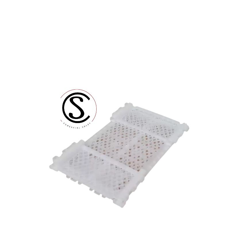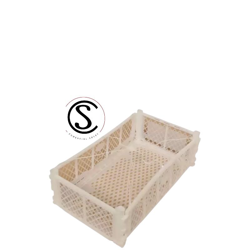 Caja plástica, fabricada en Polipropileno natural, utilizada principalmente para la facilitación de exportación en frutas o verduras, resistentes en el apilamiento e ideal para cámaras refrigeradas. Ideal para almacenamiento y distribución de Champiñones y Paltas. Fácil de trasladar al ser abatibles.