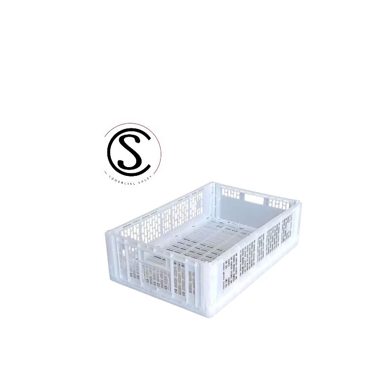 Caja plástica, fabricada en Polipropileno virgen, su característica plegable o abatible, permite el ahorro de hasta un 75% de espacio con la caja una vez desocupada, especial para el almacenamiento de frutas y múltiples aplicaciones en almacenamiento o distribución.