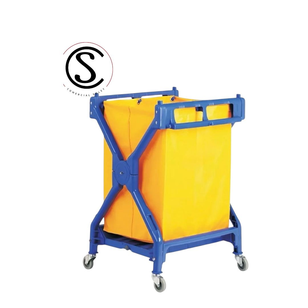 Carro de lavandería con bolsa de material impermeable y ruedas industriales.