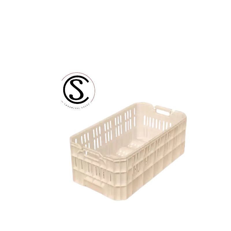 Caja plástica, fabricada en Polietileno de alta densidad virgen, ideal para la cosecha de Cerezas, carozos o uso logístico.