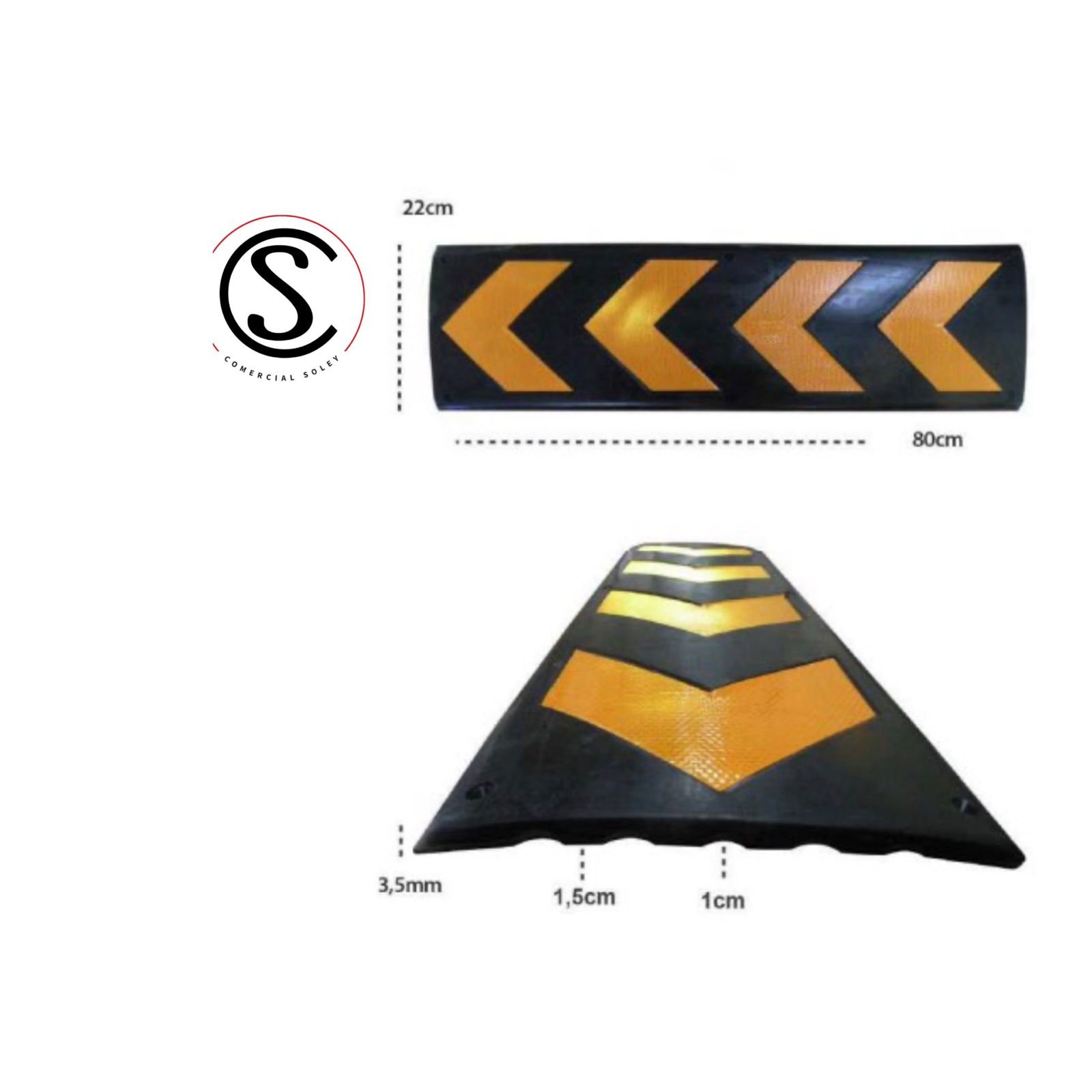 Elemento señalética que orienta al conductor del vehículo para lograr una conducción expedita y segura. Su diseño permite pegarlo al muro, protegiéndolo de roces o topones. Las franjas amarillas reflectantes resaltan para mejorar la visibilidad en lugares oscuros. Ideal para bajadas y curvas de estacionamientos subterráneos. Fabricado en Caucho SBR.